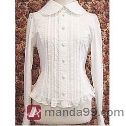 Amanda99 White Ruffles Long Sleeves Cotton Lolita Blouse |