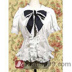 Amanda99 White Short Sleeves Black Bow Cravat Cotton Lolita Blouse |