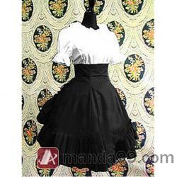 Amanda99 White Short Sleeves Blouse And Black Cotton Lolita Skirt |