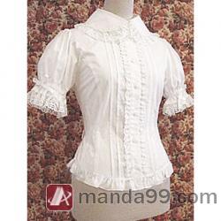 Amanda99 White Short Sleeves Lace Ruffles Cotton Lolita Blouse |