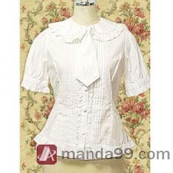 Amanda99 White Short Sleeves Tie Cotton Lolita Blouse |