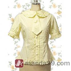 Amanda99 Yellow Short Sleeves Tie Cotton Lolita Blouse |