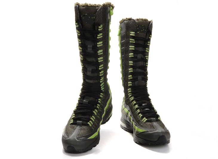 Black & Green Leather & Rubber With Tie Women's Ankle Boots |