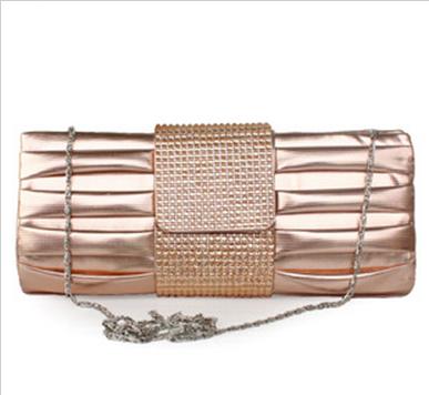 Elegant Pleated Satin Clear Crystals Ladies' Clutch Handbag |