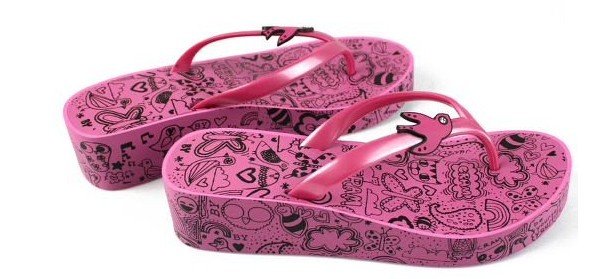 EVA & Rubber Red With Butterfly Images On Women's Flip Flops |