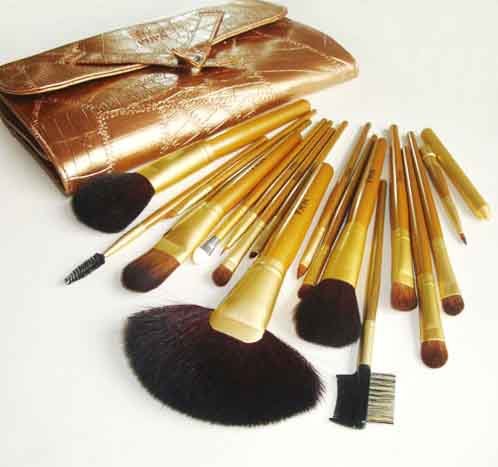Place of Origin: Guangdong China (Mainland) Brand Name: Y&Z trade Use: Face Handle Material: Metal Brush Material: Nylon Used With: Blusher,Concealer,Eye Shadow,Eyebrow Pencil,Eyeliner,Foundation,Lip Gloss,Lip Liner,Lipstick Style: Angular Blush,Flat brush,Fan Brush Items Per Set: 18pcs Model Number: 188013 make up: brush mini set: golden
