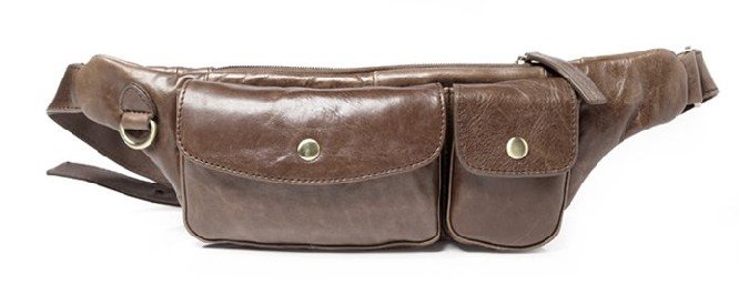 Genuine Leather Light Brown With Buttons Waist Bags |