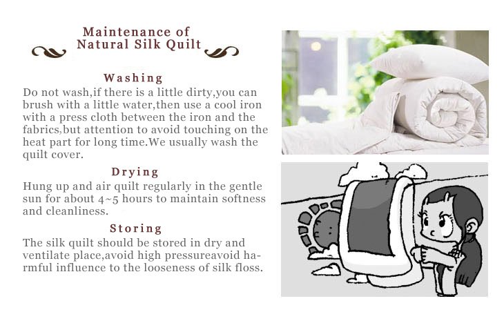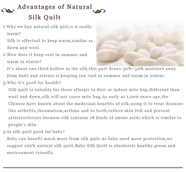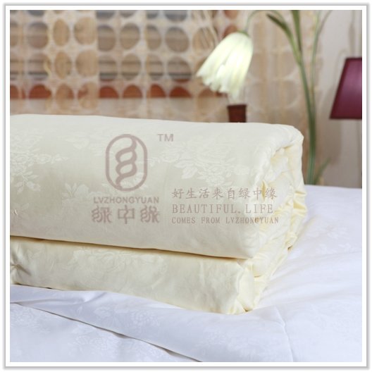Place of Origin: Jiangsu China (Mainland) Filling: Silk Brand Name: Lvzhongyuan Size: King Use: Home,Hotel,Wedding,Hospital,Nursing Pattern: Plain Dyed Type: Comforter Set Style: Jacquard Material: 100% Cotton Age Group: Adult Model Number: LYTC0516 Quantity: 1 Technics: handmade Color: Any color as customer requirement