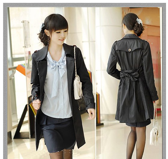Free shipping new fashion ladies' trench coat outdoor long dress windbreaker spring autumn slim clothes outerwear Black overcoat