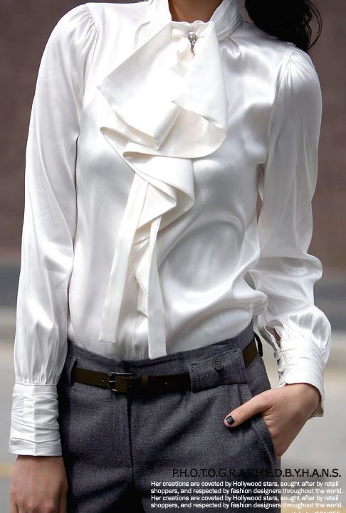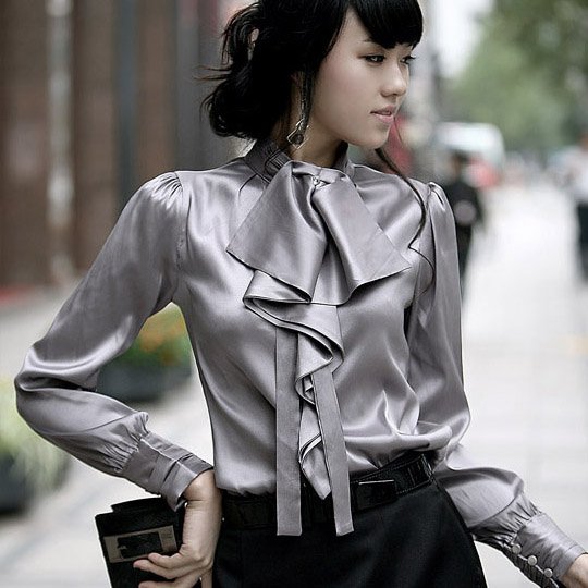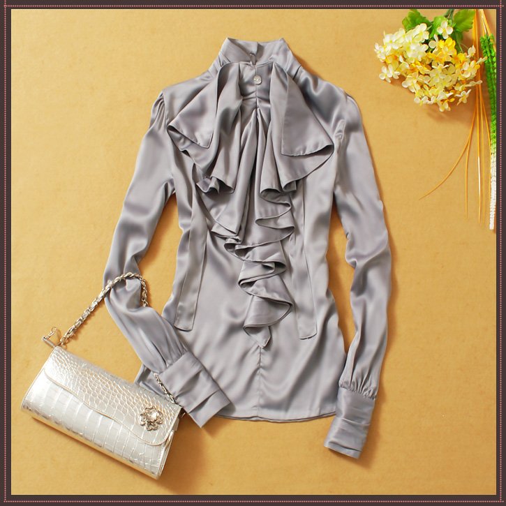 Exempt freight, wholesale and retail, large lotus court noble silk shirt had brought matt gray/white