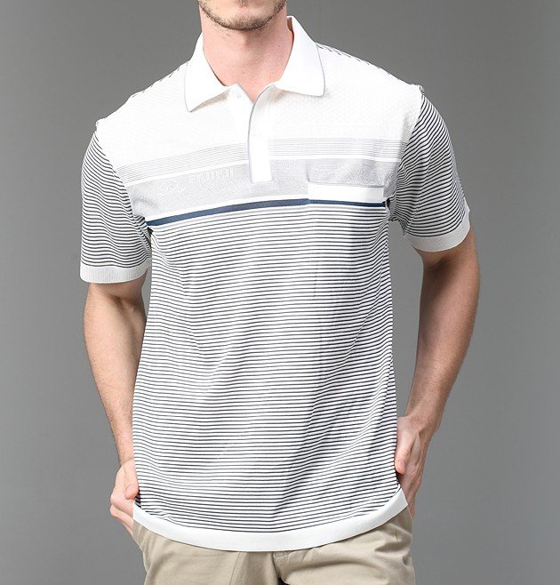 Men's Stripe Short Sleeve T-shirt Lapel Goldlion T-shirt Silk T-shirt |