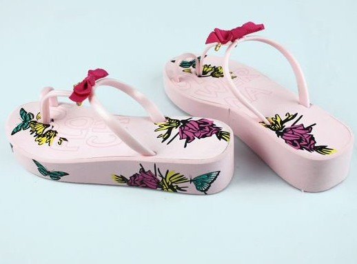 Pink Rubber With Flowers Images On Women's Flip Flops |