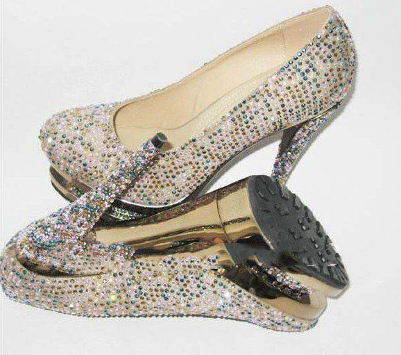 Gender: Women Item Type: Pumps Toe Style: Closed Toe Shoe Width: Medium(B,M) Platform Hight: 4.5 cm Toe Shape: Round Toe Upper Material: Genuine Leather Heel Hight: High (3" and up) Decorations: Rhinestone Lining Material: Genuine Leather Occasion: Wedding Pump Type: Basic Heel Type: Platforms Celebrity: Classic