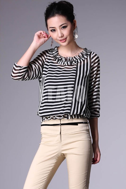 With Stripes Black Long Sleeve Ladies' Blouses & Tops |
