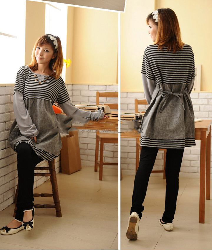 Women's Long Sleeve Pinstripe Long Maternity Clothing |